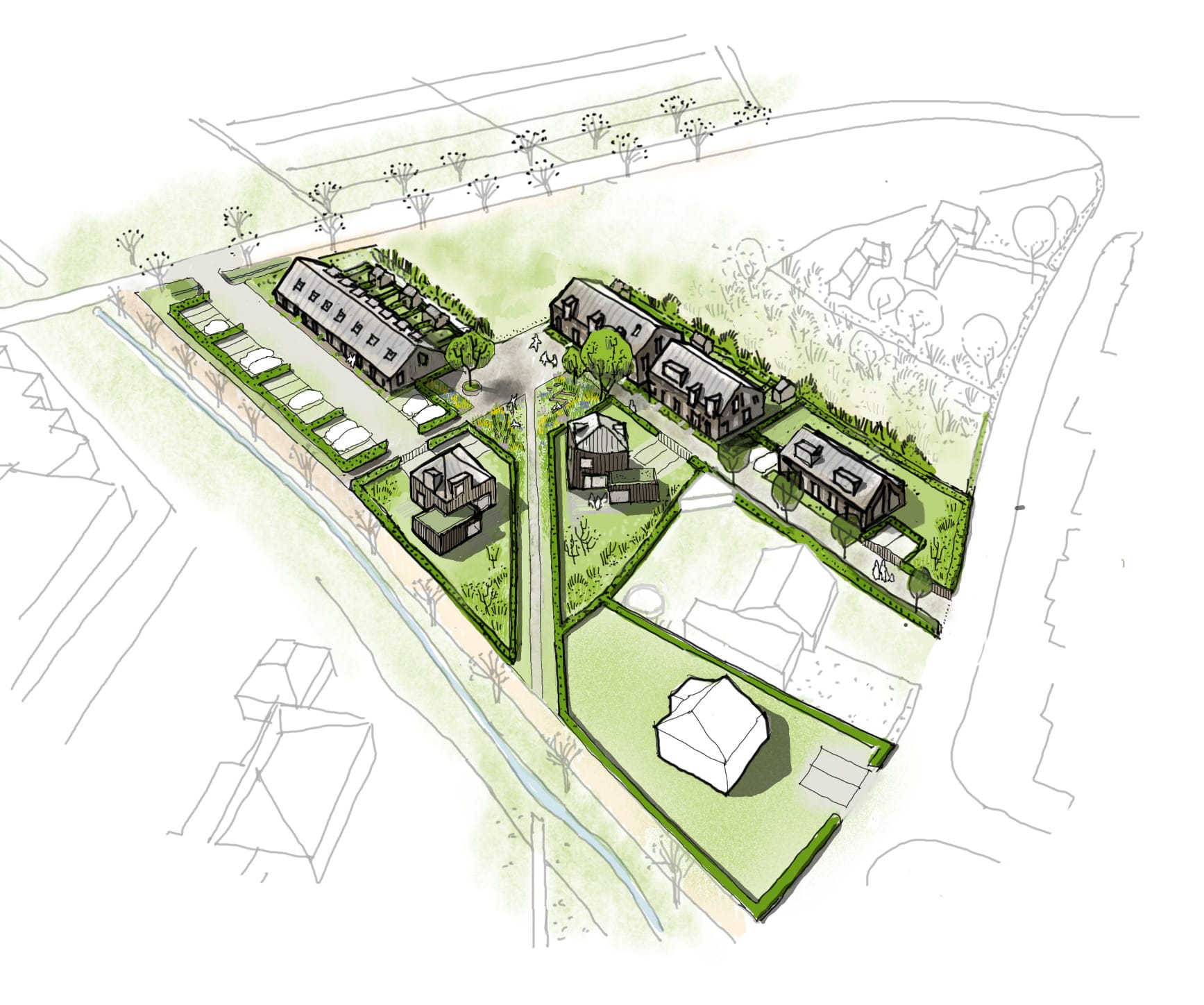 Om het plan financieel rendabel(er) te krijgen, verrijzen er ook twee vrijstaande woningen van circa 155 vierkante meter in het hofje. Die woningen hebben een grote omringende tuin en twee parkeerplaatsen per perceel.