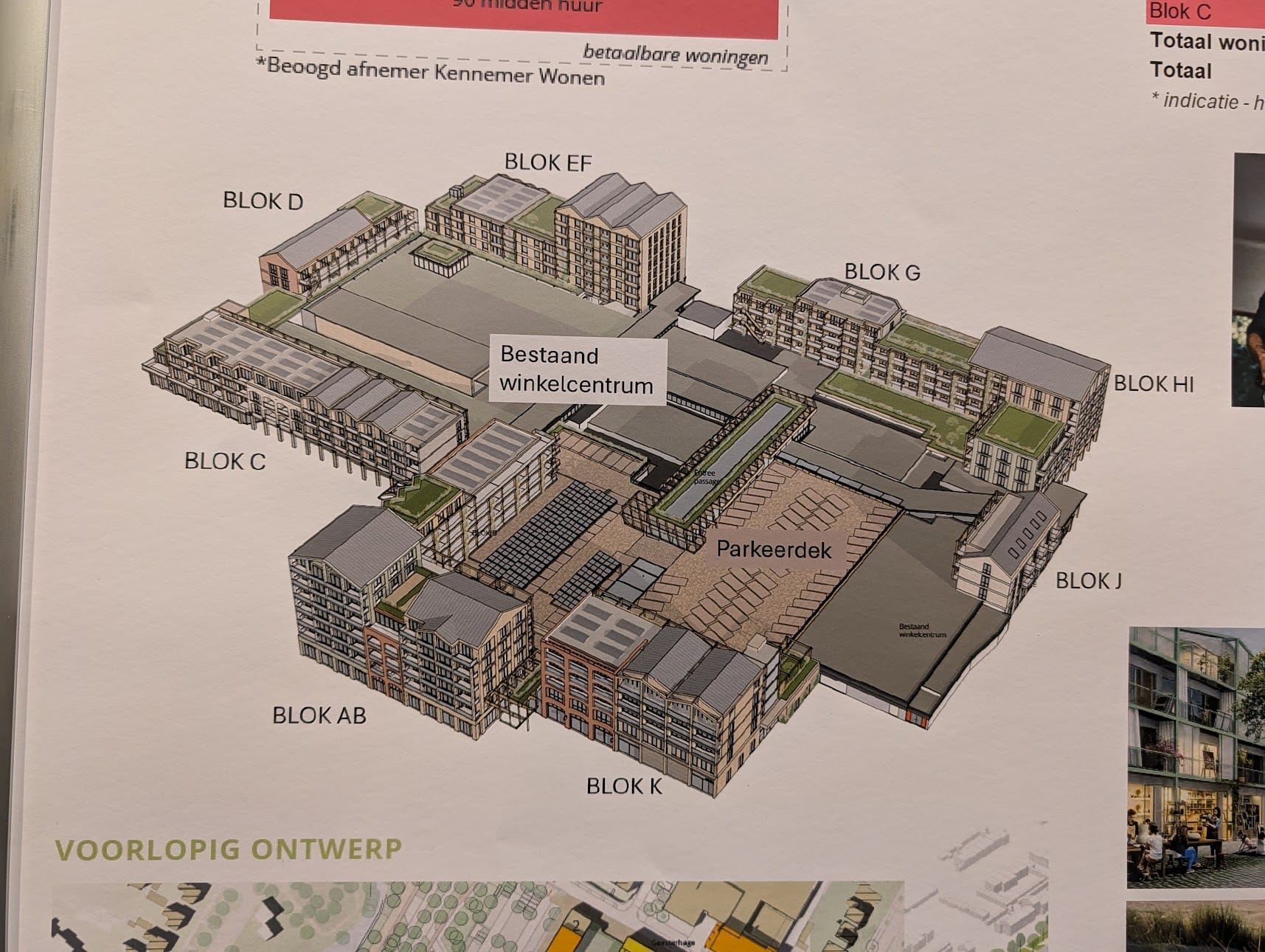 Die plattegronden en prijzen, zichtbaar op grote panelen, trokken veel bekijks op de één uur durende informatieavond. Men stond vervolgens in de rij om zich bij een gemeentemedewerker te registreren als geïnteresseerde in een huur- of koopappartement. Ik zag relatief veel ouderen, maar ook twintigers die over een paar jaar graag uit huis willen en hopen op betaalbare nieuwbouw.