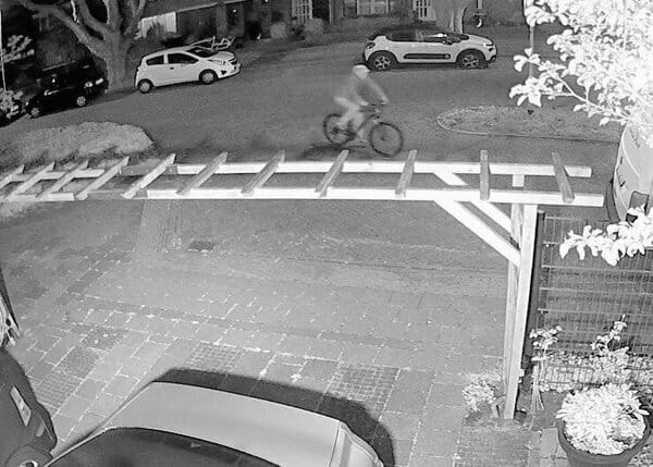 - De politie heeft foto's verspreid van een fietsende man die in de nacht van 19 op 20 mei (ja, mei) van zeker tien auto's de banden heeft lek geprikt in Castricum en Limmen. De politie hoopt dat het delen van de foto's, je ziet er hieronder een, leidt tot tips over de identiteit van de verdachte.