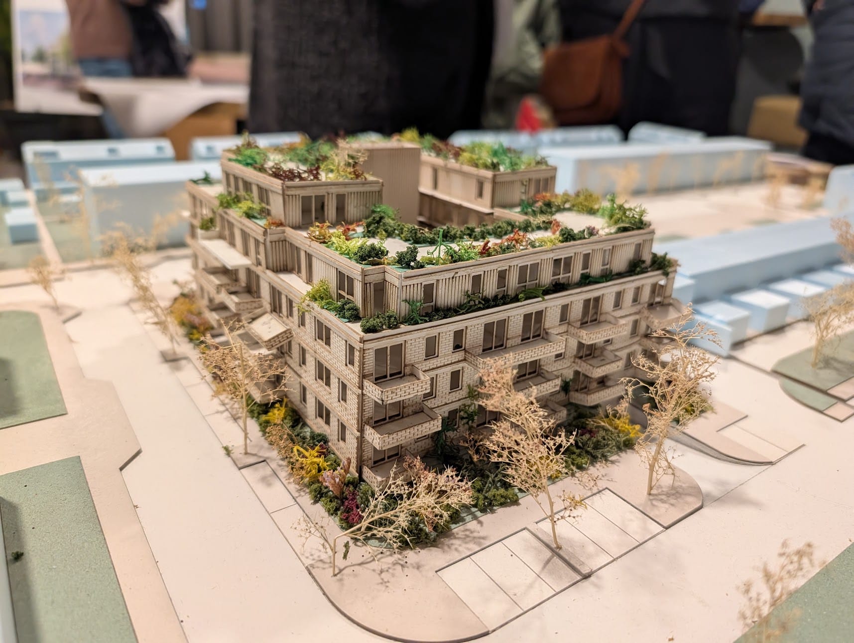 Op de participatieavond deelden Biesterbos Groep en de gemeente ook een concretere indruk van hoe het appartementencomplex eruit komt te zien. Dit zogeheten voorlopig ontwerp zie je boven dit artikel en ik heb zelf ook wat foto's gemaakt van de geplaatste maquette.