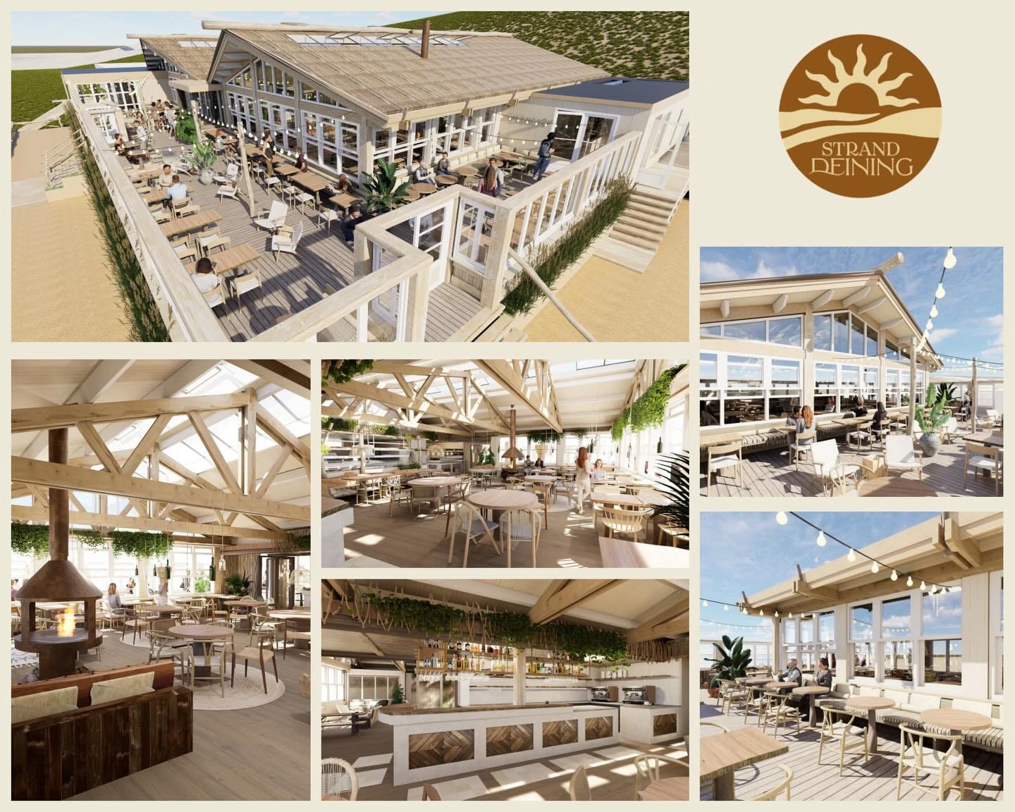 Op bovenstaande afbeelding krijg je een indruk van hoe de strandtent eruit komt te zien. Deining kiest voor houtskeletbouw, er komt weer een open haard en in de keuken verschijnt opnieuw een hout gestookte pizzaoven. De feestzaal keert ook terug en krijgt een logischere indeling, stelt Deining.