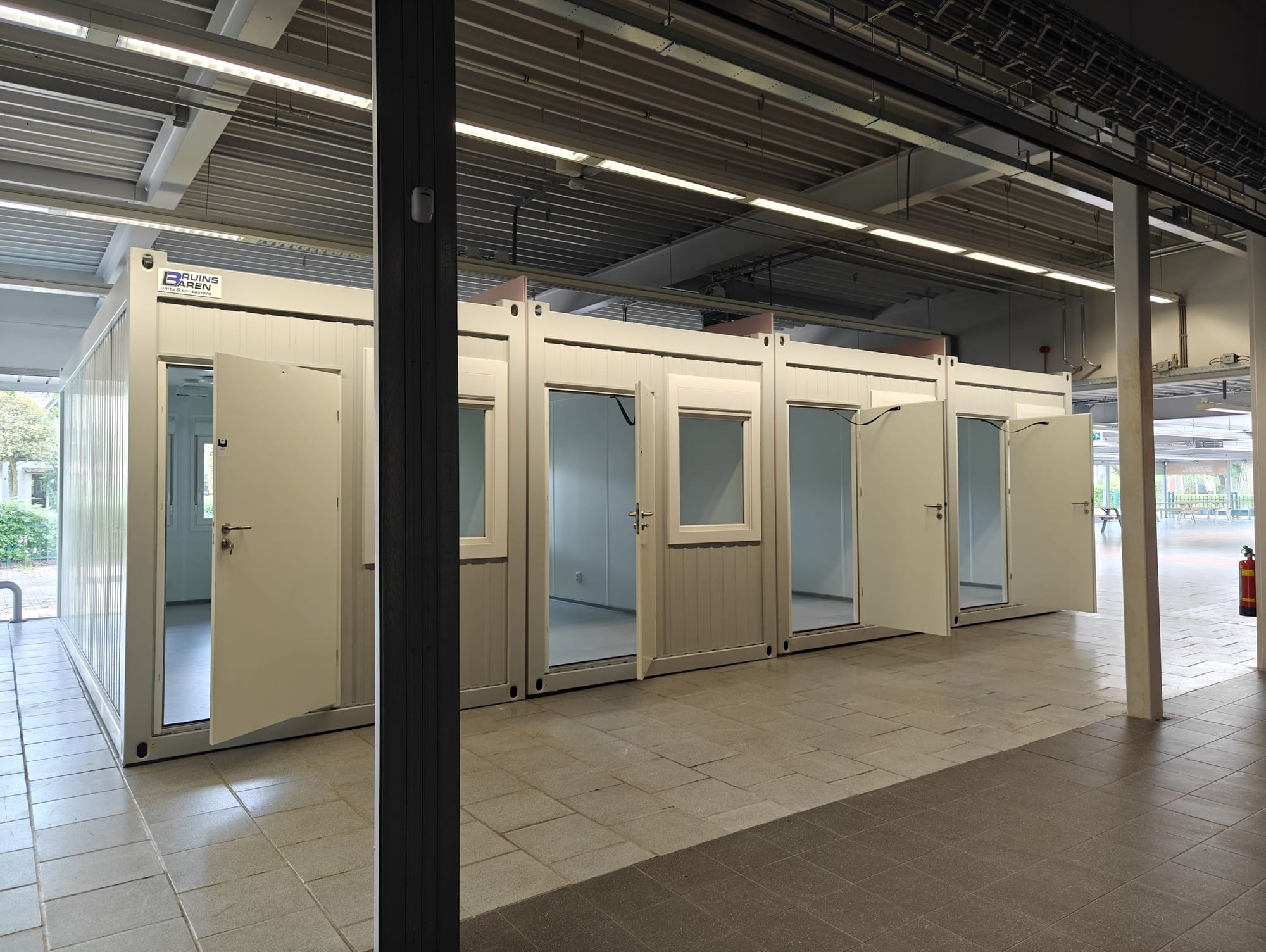 De gemeente zegt binnenkort mechanische ventilatie aan te brengen in de showroom. Volgens de gemeente voldoen de units vervolgens aan de ventilatie-eisen, wat een deskundige die door de statushouders is ingeschakeld betwist. De enige oplossing om de units voldoende te laten ventileren is door ze niet in de hal maar aan de gevel te zetten, zodat een geopend raam in de unit frisse buitenlucht binnenlaat. Dat laat het gebouw echter niet toe zonder delen van de gevel te slopen. De statushouders vragen zich gelet op de genoemde problemen af of er wel een haalbare oplossing is, vertelt hun woordvoerder mij. 'Het gaat in ieder geval heel veel geld kosten'.