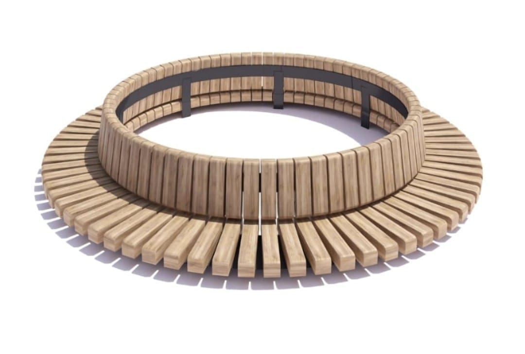 De gemeente gaat de boom op maandag (voor veel lezers is dat morgen) kappen. Op 17 november starten vervolgens de werkzaamheden voor het planten van een nieuwe boom - waarover zo meteen meer. Een deel van de bestrating gaat eruit, er komt een groot gat waar verse grond in gaat en na het aanleggen van nieuwe bestrating komt er ook nieuwe verlichting. Op 24 november plant de gemeente de nieuwe boom, waar een ronde bank omheen geplaatst wordt. Die bank is ook nieuw, want de huidige kastanjeboom staat simpelweg midden op het pleintje. Hieronder zie je, volgens mij als eerste, een impressie van de bewuste bank.