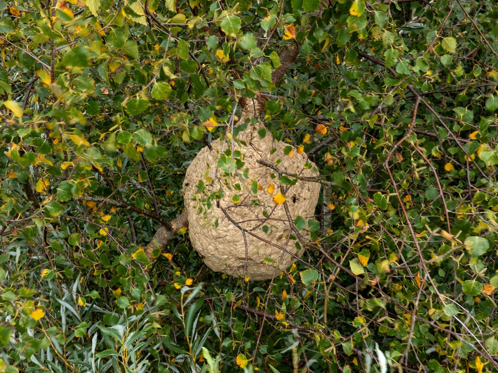 - In een boomtop vlakbij de volkstuintjes aan de Korte Brakersweg, nabij de N203, is een groot nest van de Aziatische hoornaar aangetroffen. Het nest, ter grootte van een skippybal, hangt op ongeveer vijf meter hoogte. Aziatische hoornaars eten andere insecten, zoals bijen en hommels, op en kunnen mensen aanvallen als ze zich bedreigd voelen. Daarom moeten experts de grote nesten verwijderen. De overheid probeert de invasieve diersoort te bestrijden, maar heeft daar grote moeite mee omdat de Aziatische hoornaar vrijwel geen natuurlijke vijanden heeft en zich massaal voortplant. Persfotograaf Sam de Joode wist met zijn drone een scherpe foto te maken van het nest nabij de volkstuintjes. Dank voor het delen!